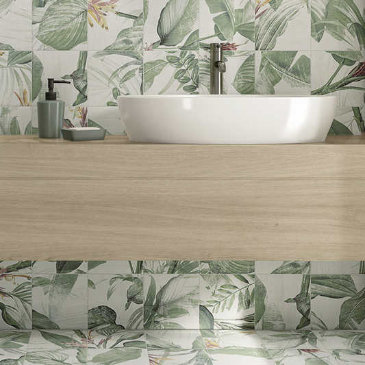Bottega Spring Leaves Porcelain Tile 20 x 20cm