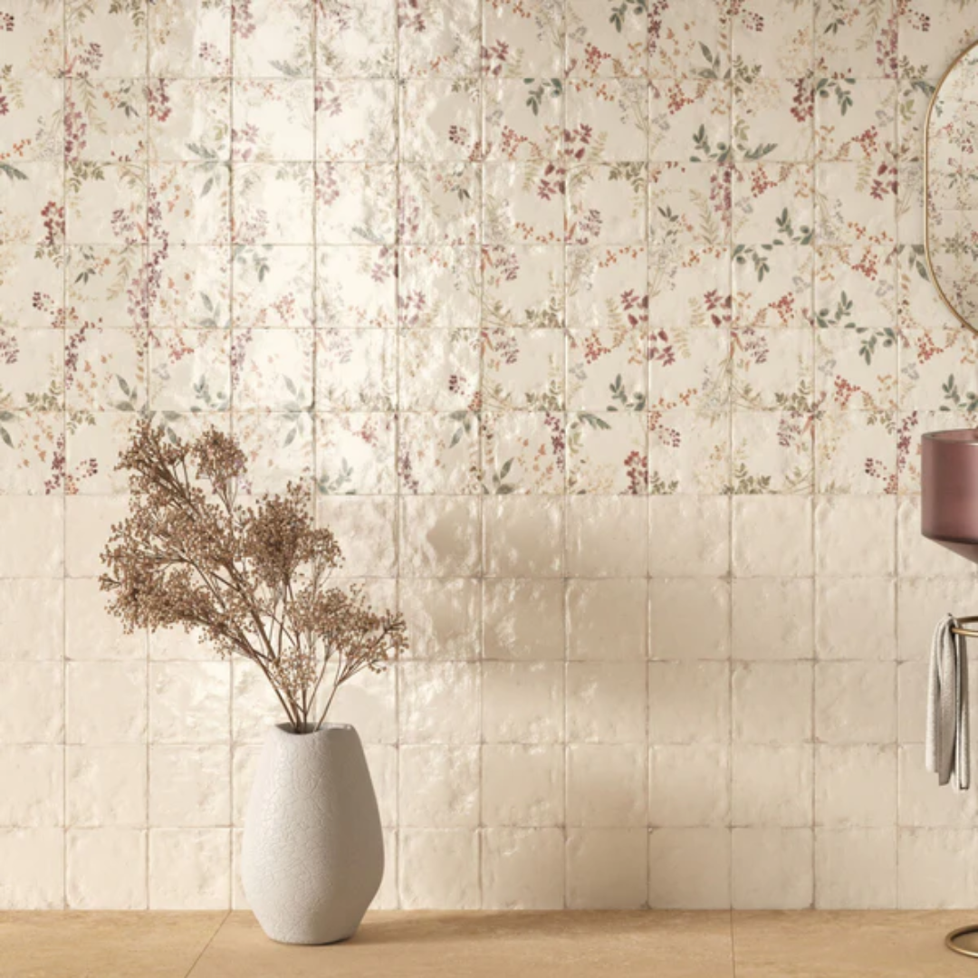 This handcrafted character gives every piece a distinctive artistic quality, making it perfect for floral feature walls, statement splashbacks, boutique bathrooms, fireplaces and décor-led commercial spaces.